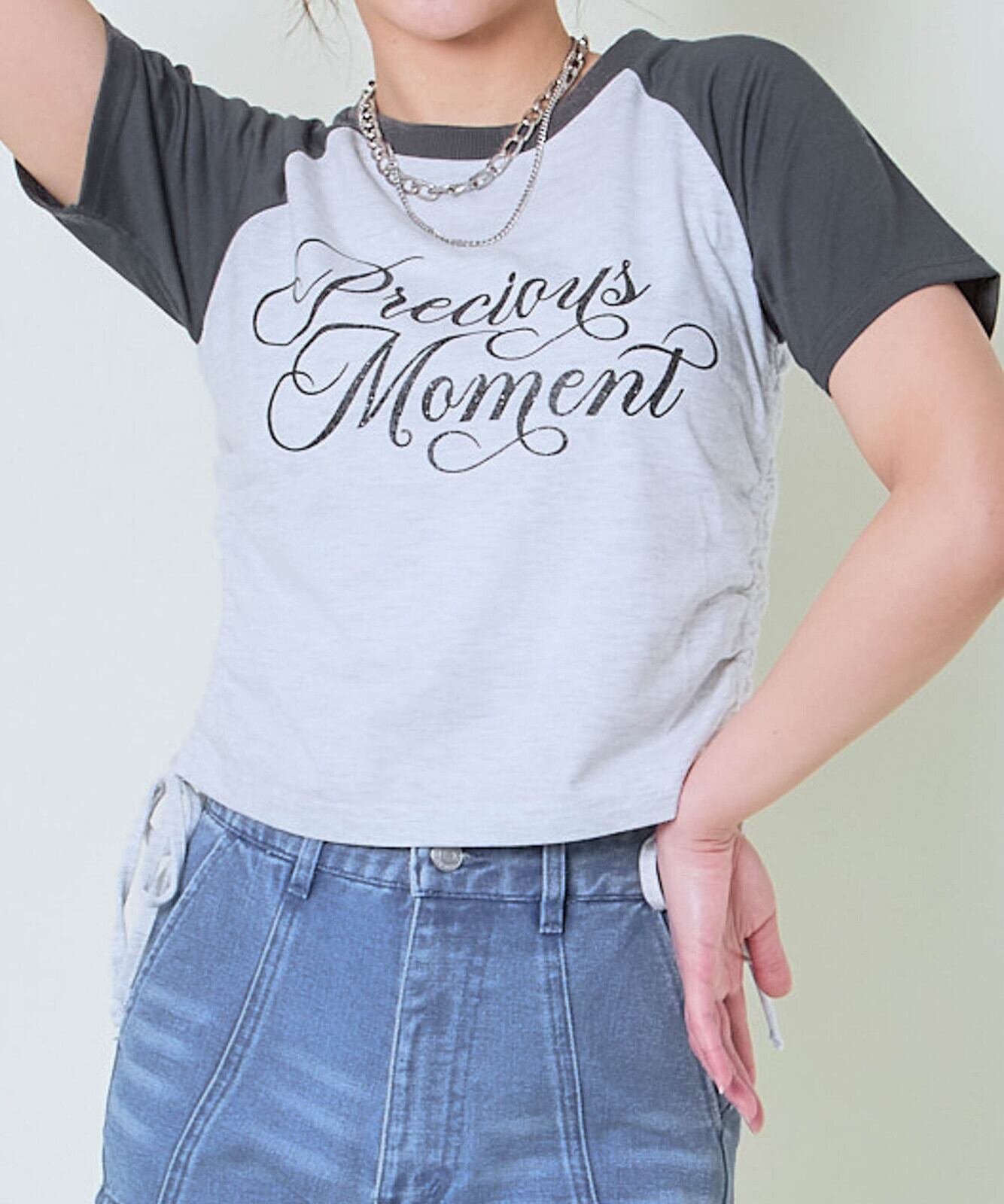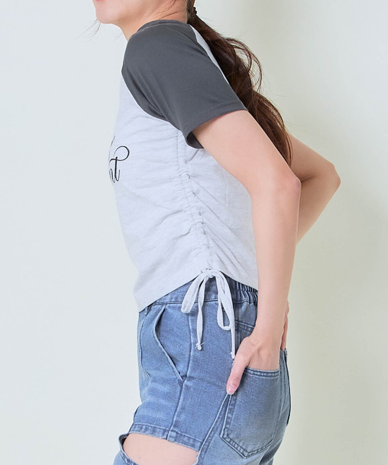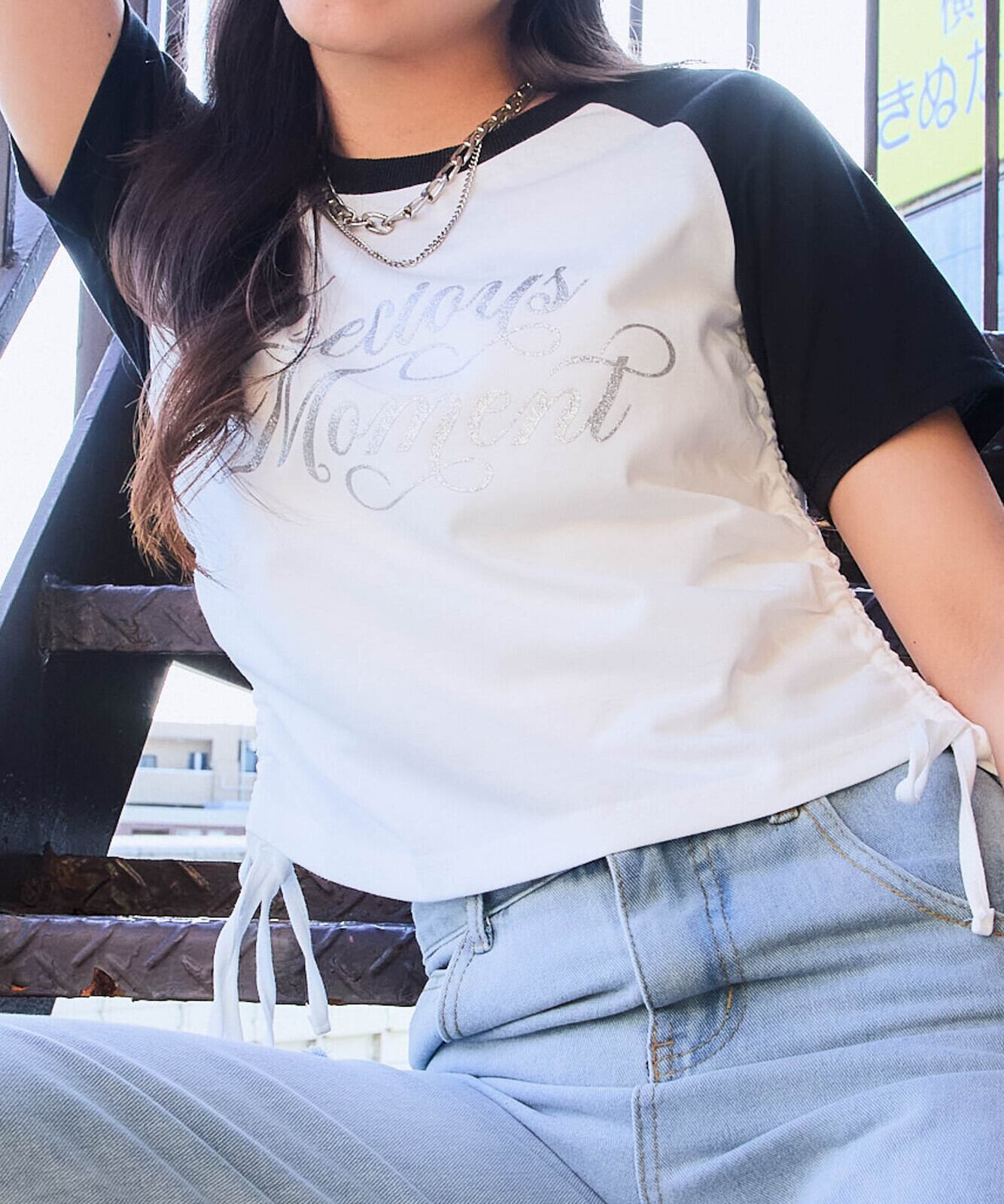 ラメロゴが目を引く、ほんのり甘さのある大人カジュアルなドロストTシャツが登場。バイカラーデザインでスポーティさをプラスしつつ、フロントのラメプリントがフェミニンな印象を添えてくれます♪サイドにはドロスト仕様を取り入れ、自分好みのシルエット調整が可能。シンプルだけど存在感があり、一枚で着映えする主役トップスです。