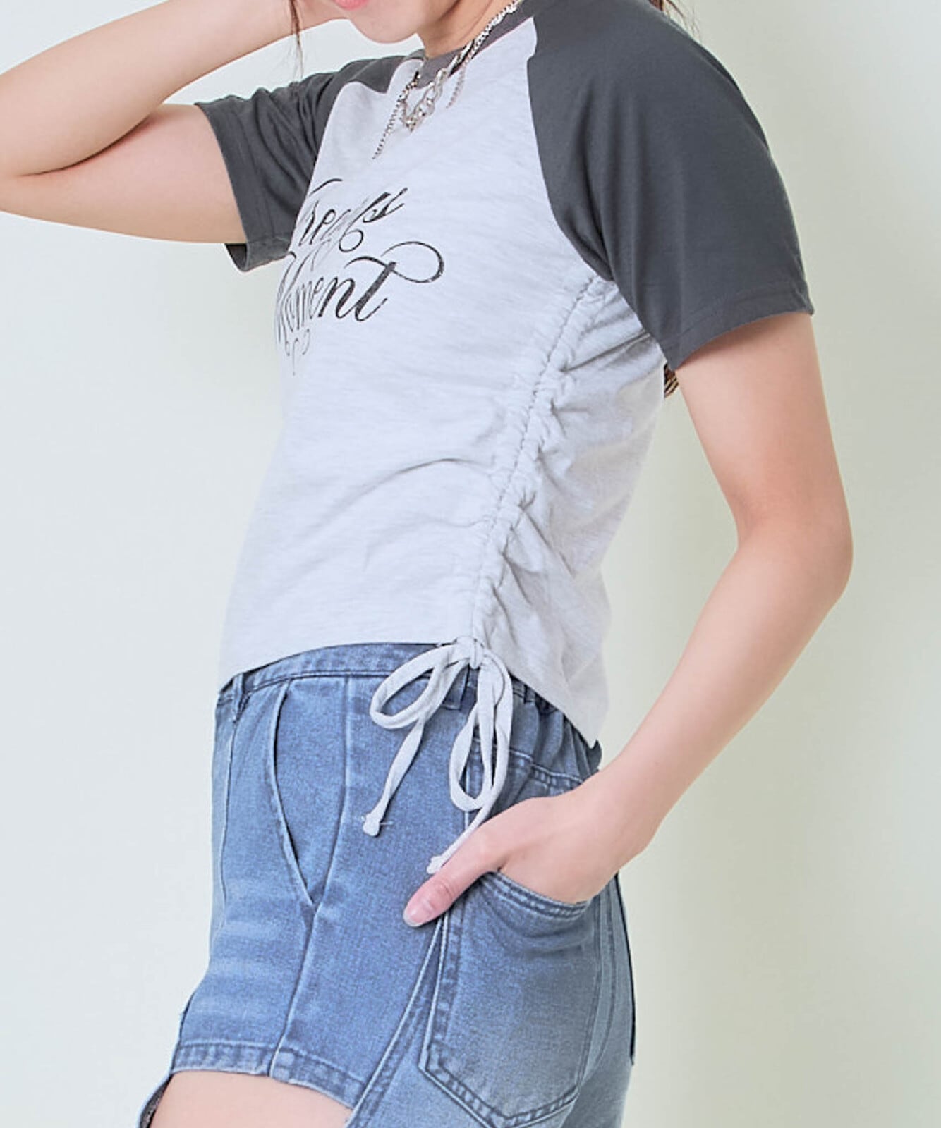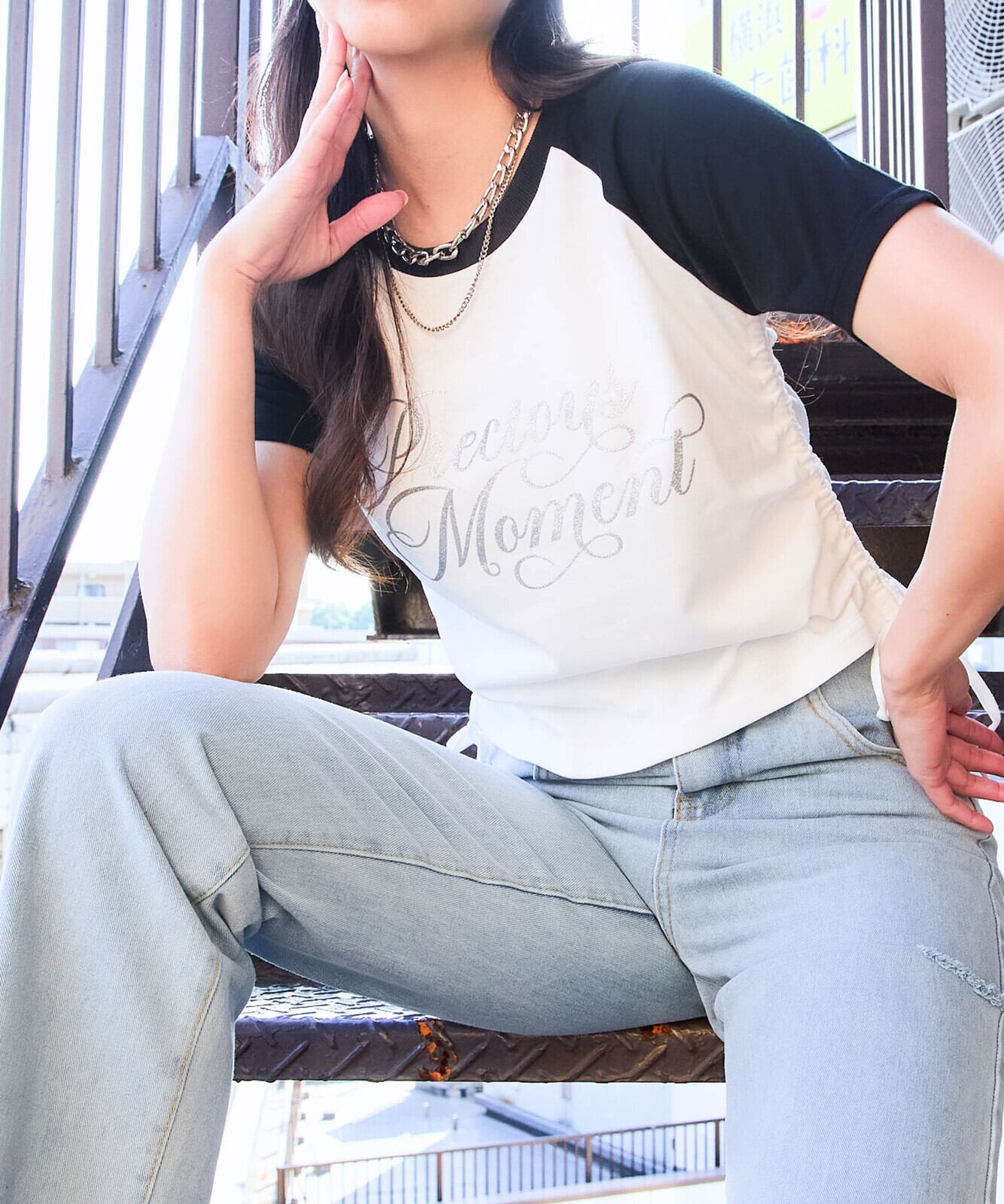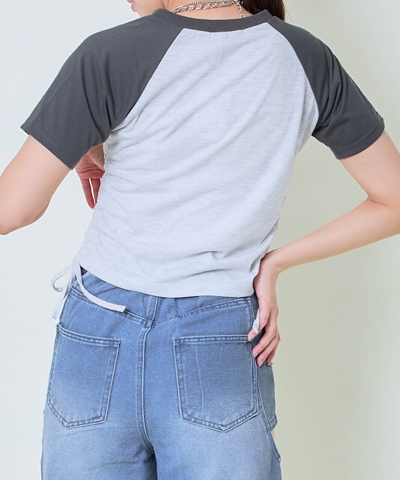 ラメロゴが目を引く、ほんのり甘さのある大人カジュアルなドロストTシャツが登場。バイカラーデザインでスポーティさをプラスしつつ、フロントのラメプリントがフェミニンな印象を添えてくれます♪サイドにはドロスト仕様を取り入れ、自分好みのシルエット調整が可能。シンプルだけど存在感があり、一枚で着映えする主役トップスです。