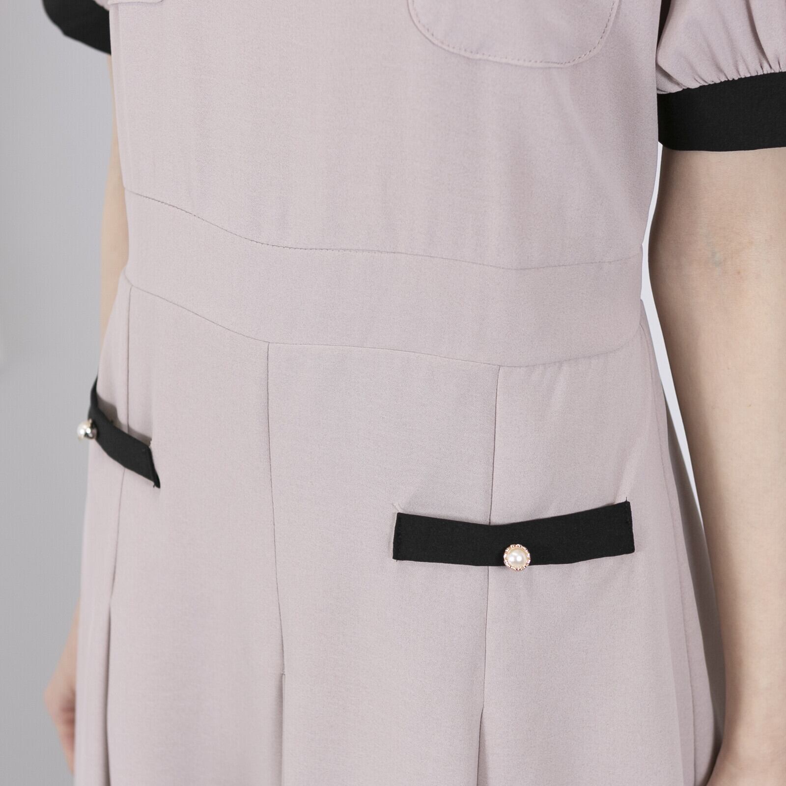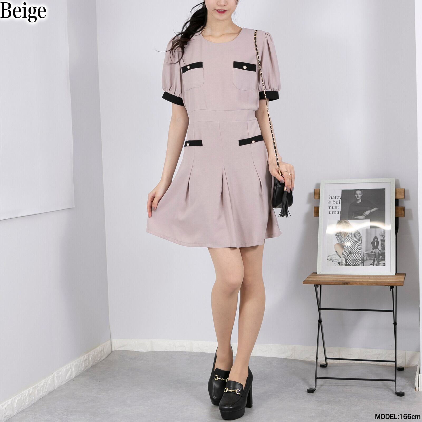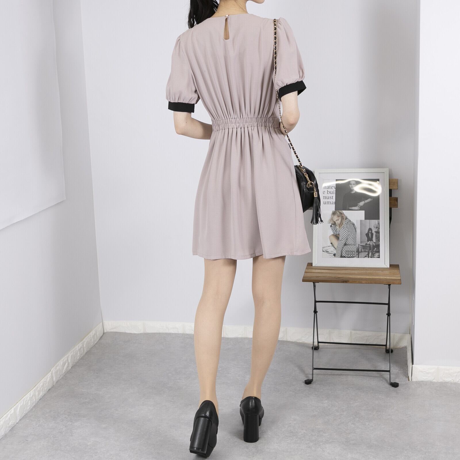 【ちょっぴりキチンと感もあるBOXプリーツのミニワンピース♪サンダルと合わせセガーリーな着こなしも◎ブーツと合わせると一気に秋っぽいスタイリングも楽しめます。さらりとした素材が気持ちよく着れます。後ろウエストはゴム仕様なのでストレスフリー♪】